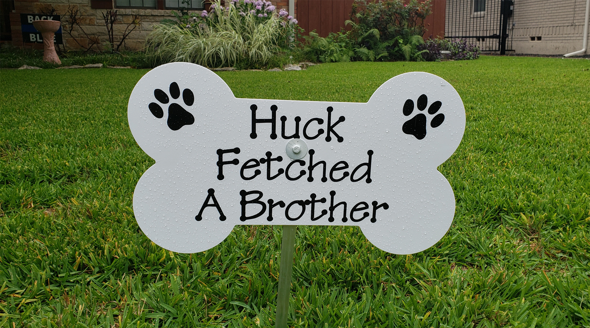 We leave the personalized bone at the front door when we pickup the stork at the end of the rental.